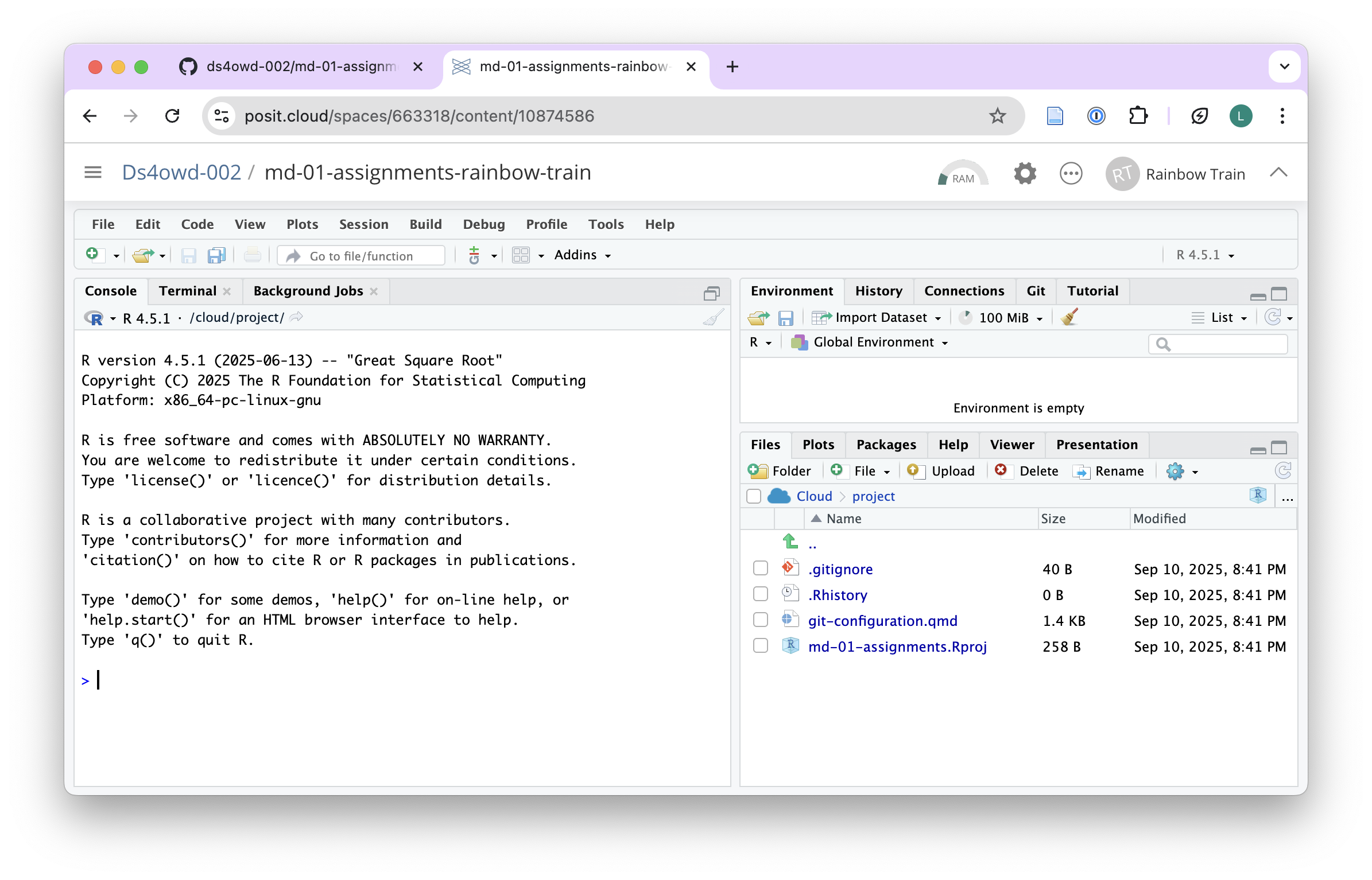 In this assignment, you will clone your personal assignment repository from GitHub to Posit Cloud.