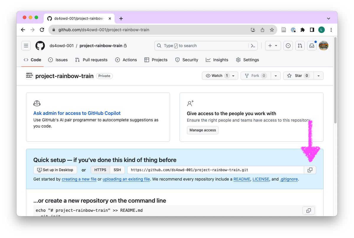 - In the “Quick setup” field, click on the clipboard next to the HTTPs URL