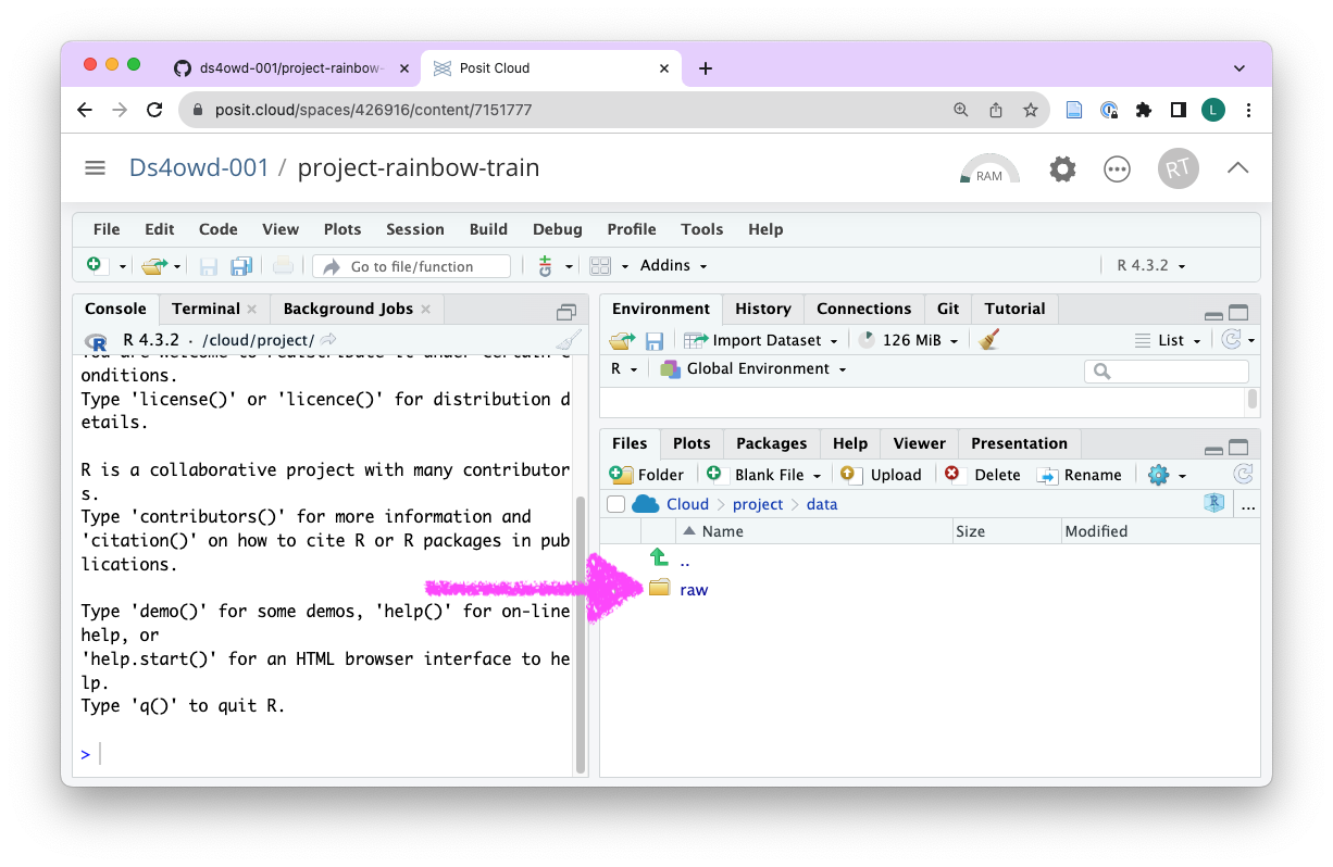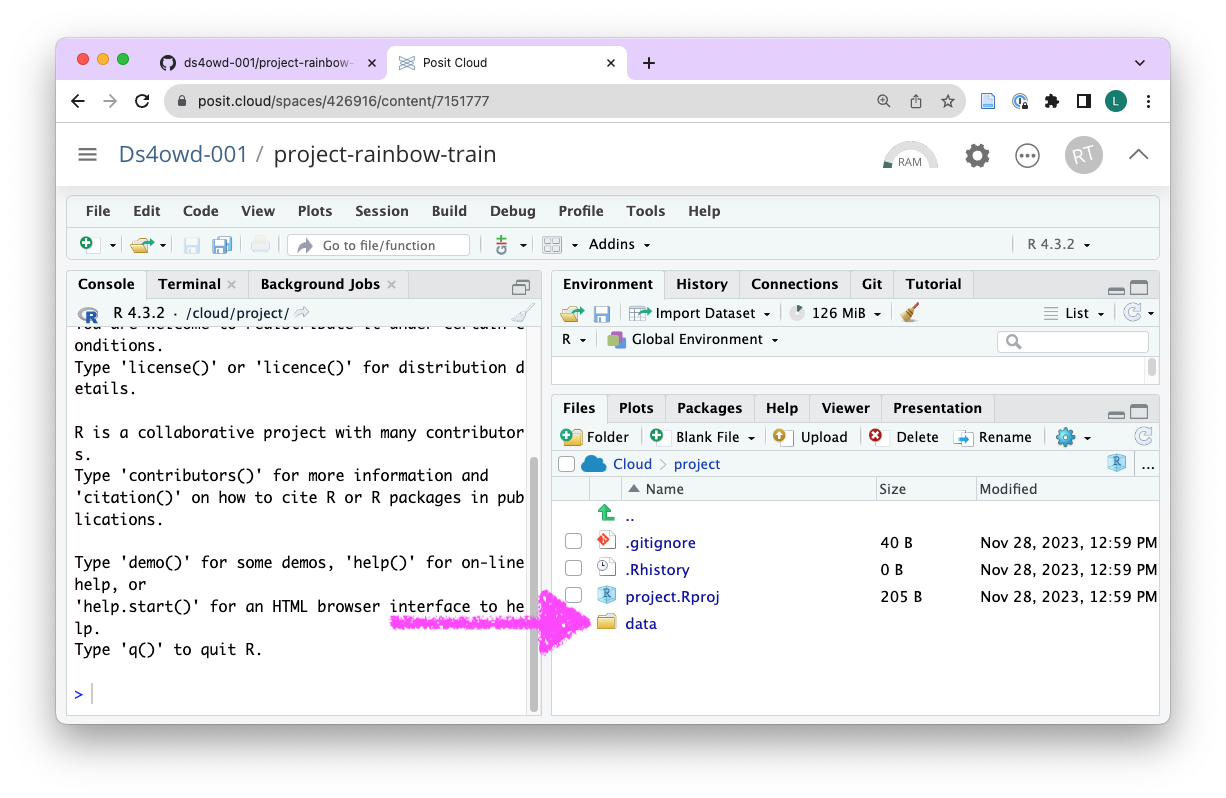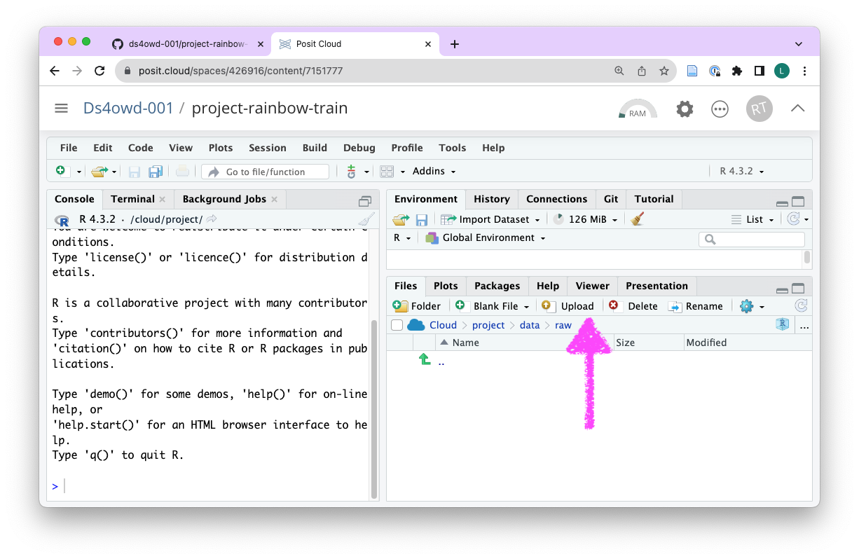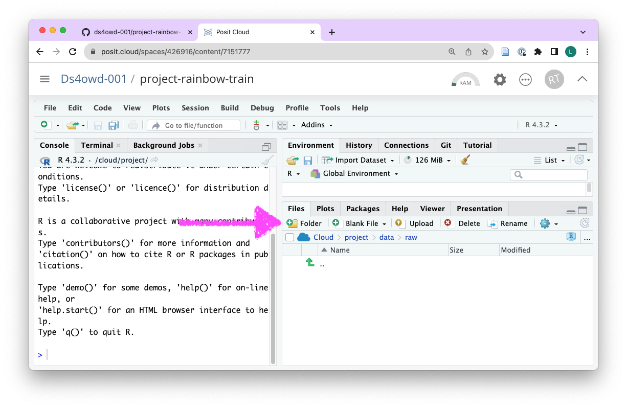 - Navigate to the Files tab in the bottom right window of RStudio.