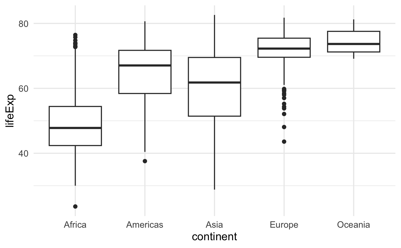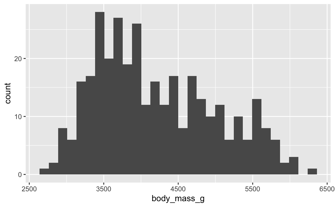 - Learners can compare three different geoms (bar/col, histogram, point) and their use case.